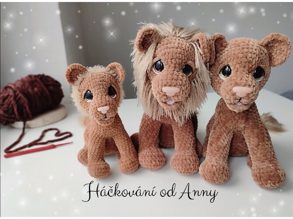 Podrobný návod na háčkovanou lví rodinku.