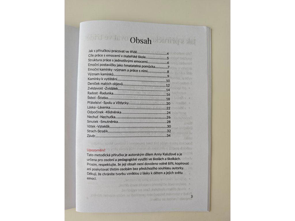 Příručka má celkem 34 stran a obsahuje inspiraci, aktivity i podněty pro práci s emocemi